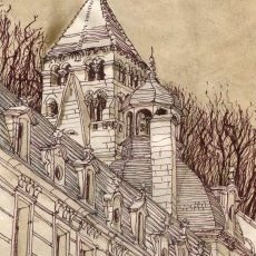 Depuis 2016 j’expose en Dordogne ou j’ai commencé à Brantôme. J’en ai profité pour développer d’autres techniques que le dessin. D’abord la vannerie, puis la poterie. J’ai découverte aussi l’écriture ... Des nouvelles, des petites histoires illustrées et des petits poèmes attendent d’être mis au propre . N’hésitez pas à monter les quelques marches pour atteindre la salle de l’horloge enfin de rencontrer cette artiste et ses dessins d’architecture. « Si je fais des expositions, c’est pour aller à la rencontre des gens, moi qui dans le fond suis très solitaire », confie-t-elle.